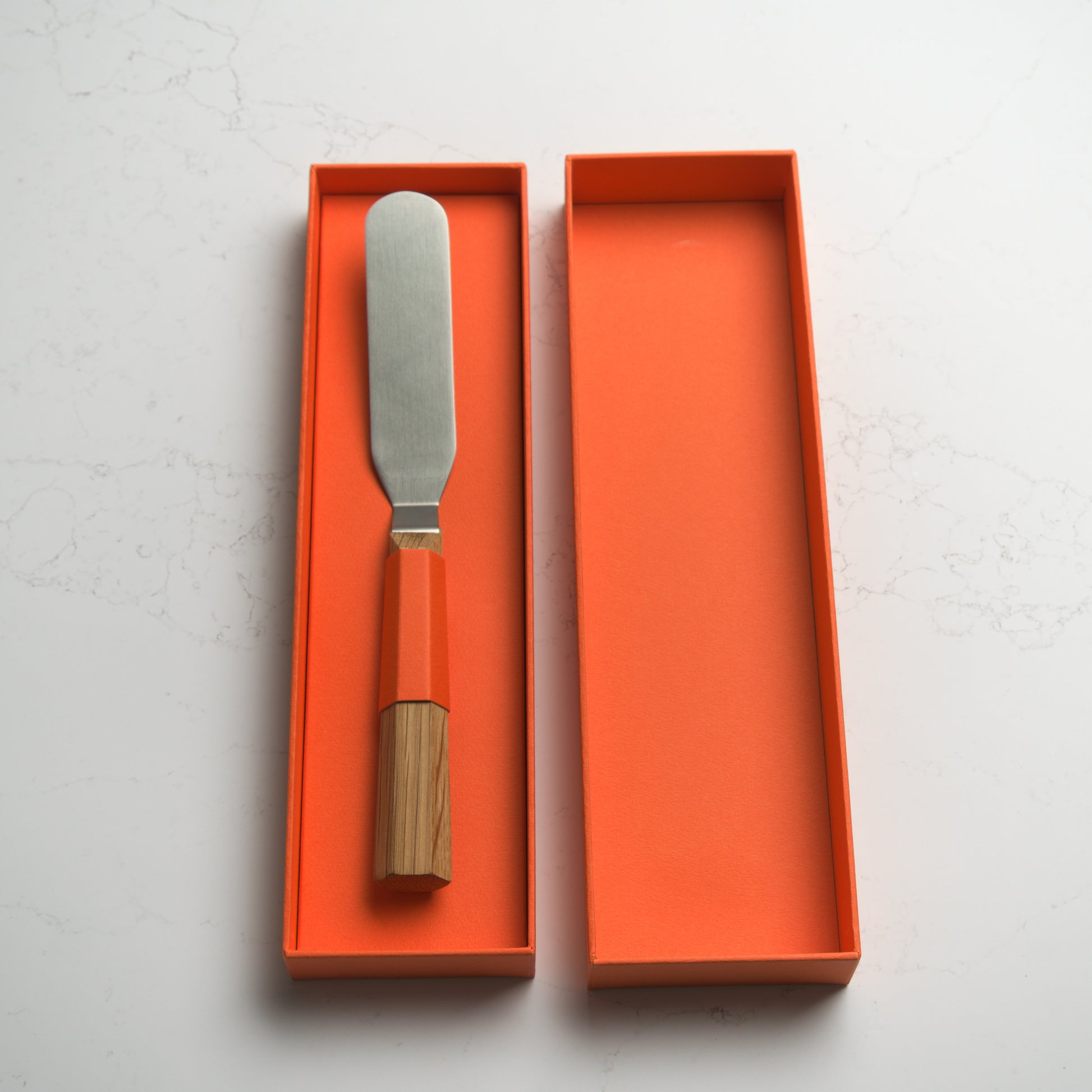 Esa is fabricated in collaboration with a woodworker and steel manufacturer in Niigata Prefecture, northwest of Tokyo. We set out to design a tool that combines the finesse of a mini offset spatula with the utility of a fish spatula.