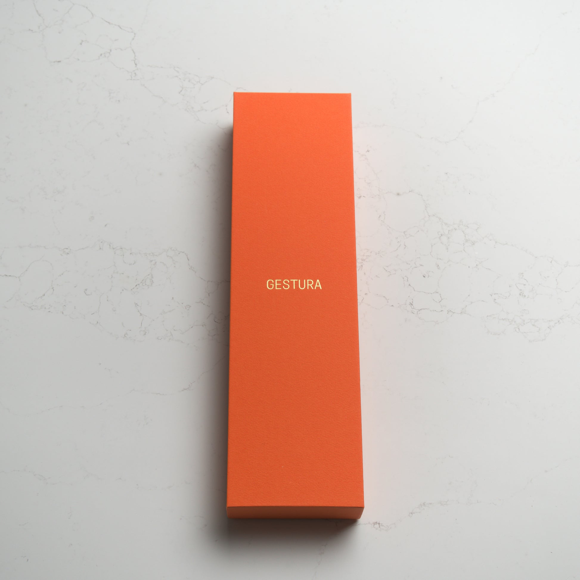 Inspired by Japanese knives, the octagonal oak handle is lightweight yet secure in the hand. Corners are softly rounded, and the handle is slightly larger than standard for improved comfort and control.