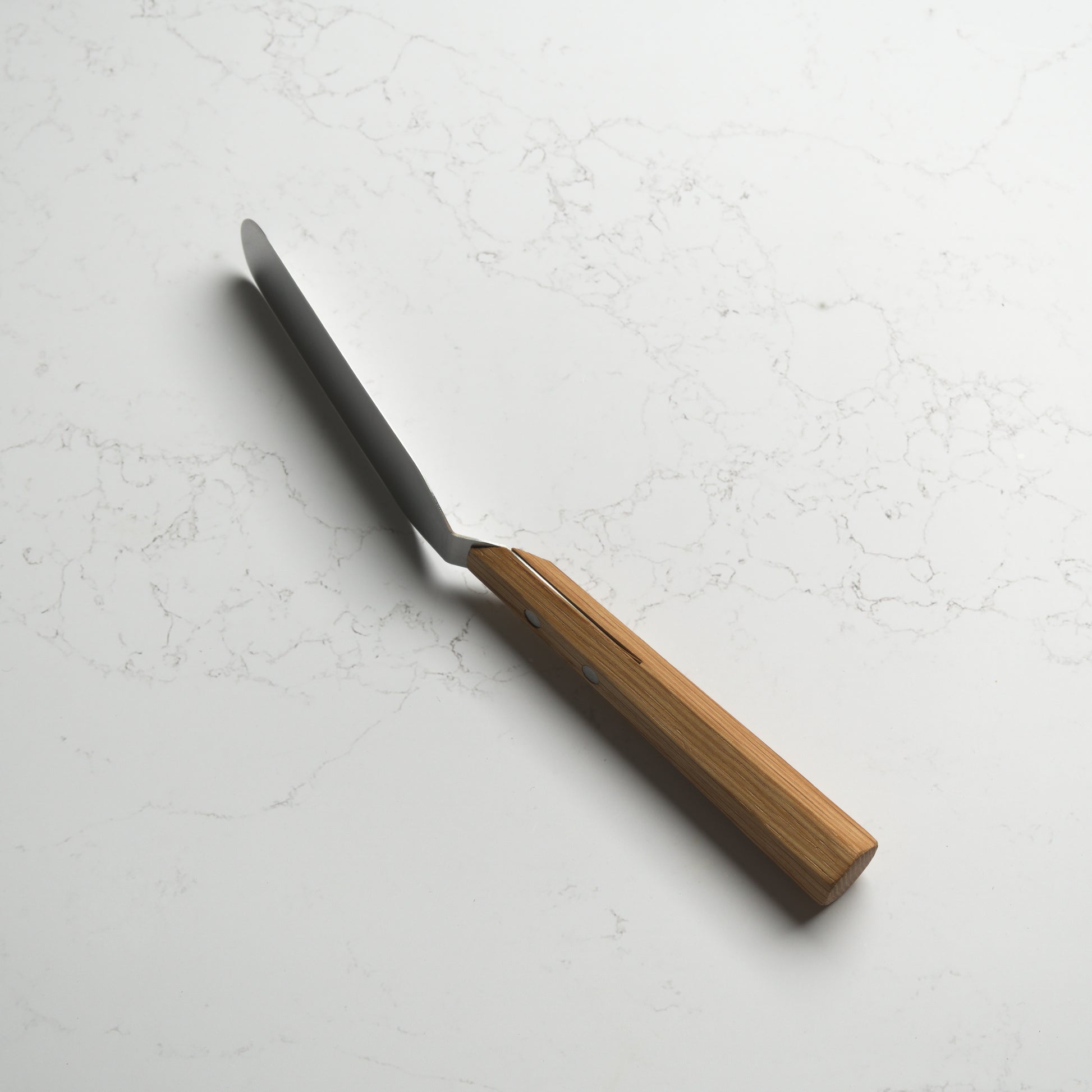 You’ll find rounded corners, generous surface area, and a slightly oversized handle for a more comfortable grip. It's ideal for delicate pastry work like frosting a cake or smoothing batter in a tray, as well as more heavy-duty tasks like flipping pancakes or fish. Also excellent for plating purées and small vegetables.