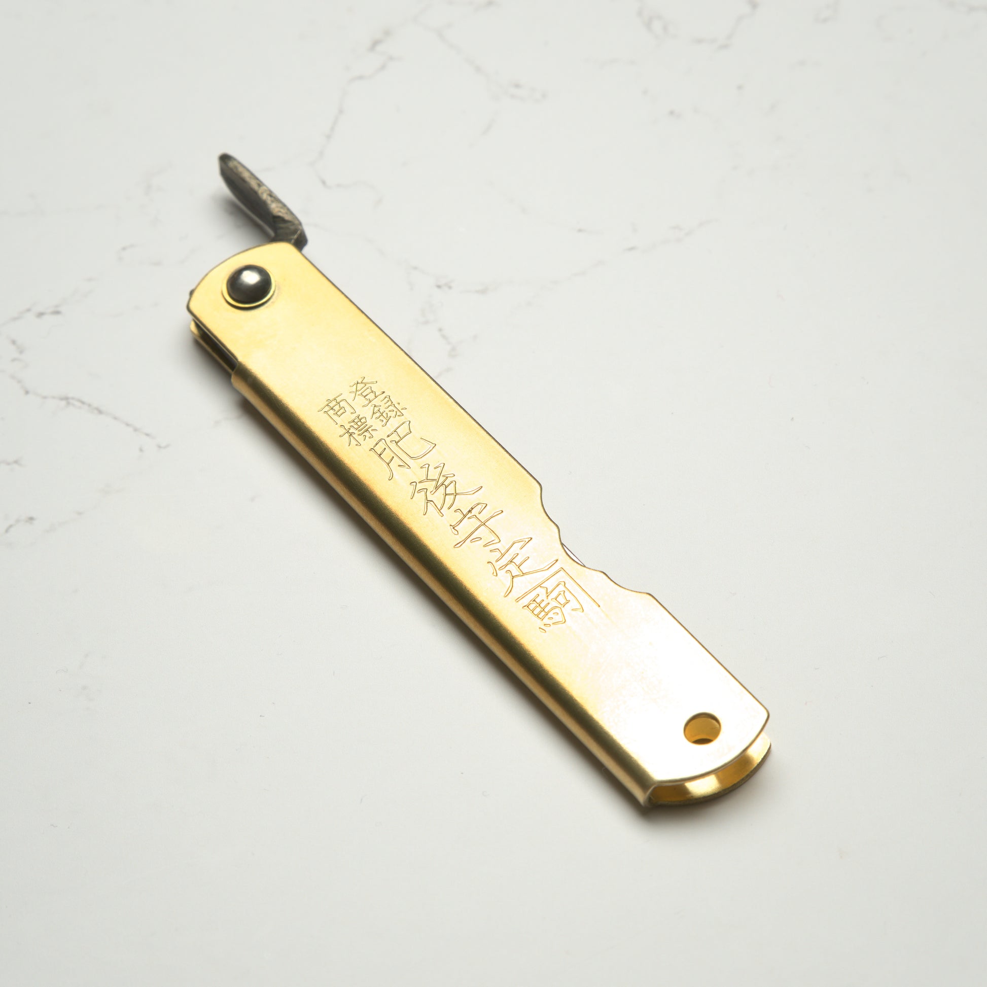 Originally created for everyday use by craftsmen and tradesmen, the Higonokami features a razor-sharp high carbon steel blade housed in a minimalist folded brass handle. It opens smoothly with a signature chikiri (thumb lever) and relies on friction rather than a locking mechanism, a pure expression of functional simplicity.