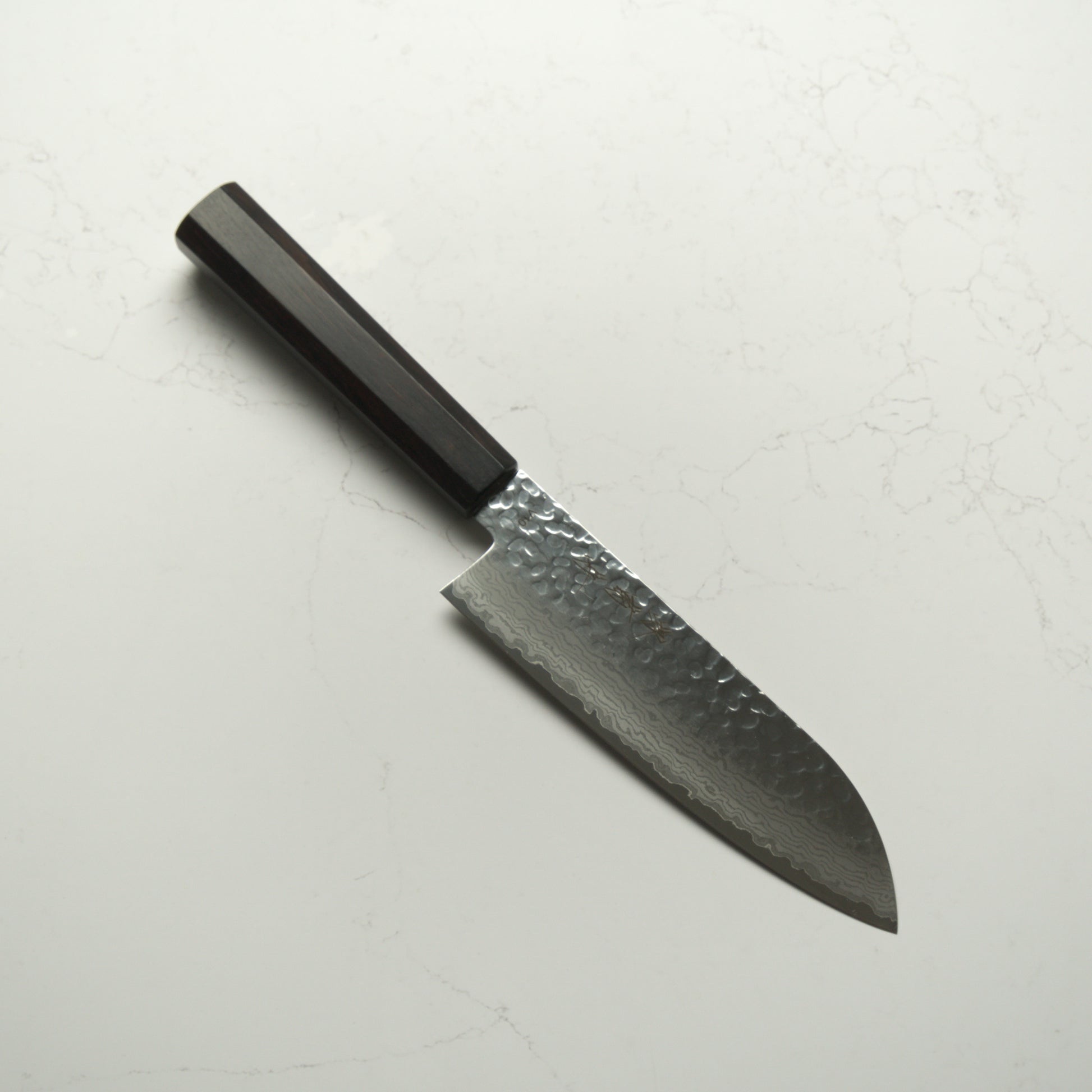 Sakai Kikumori VG10 Tsuchime Damascus Santoku 170mm - Ebony Mono