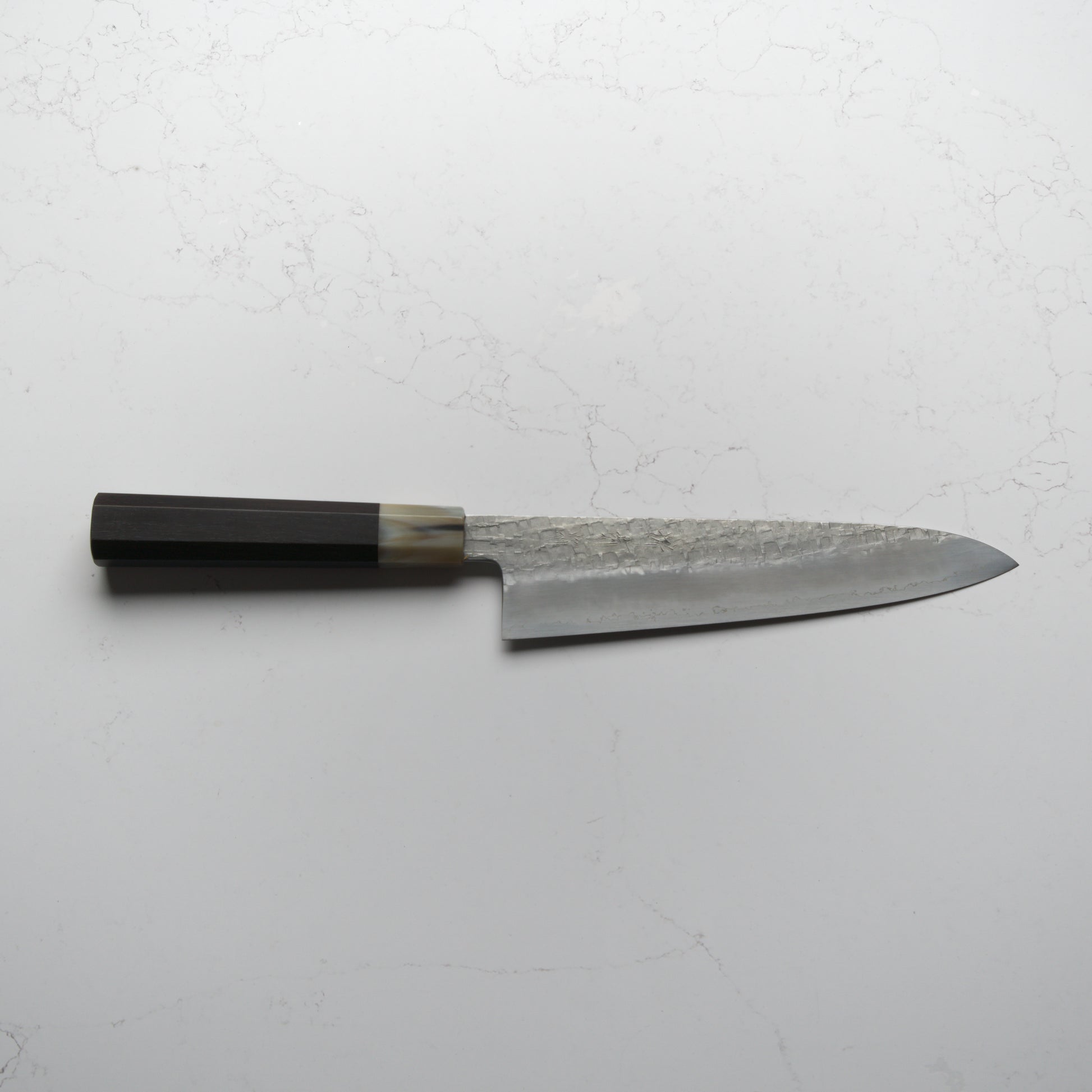 Finished with a striking Ebony & Blonde buffalo horn wa handle, the knife offers a comfortable, natural grip and beautiful contrast, completing a piece that feels as considered as it is capable.